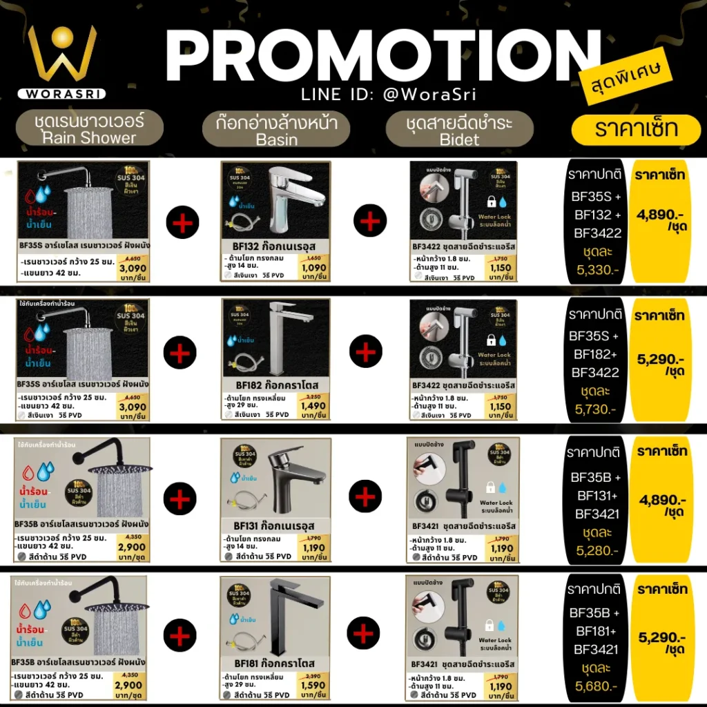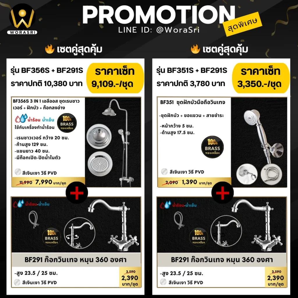 ทำไมต้องเลือก ก๊อกน้ำ อุปกรณ์ สีทอง สีเทาดำเงิน จาก WoraSri” (Unique Selling Point)