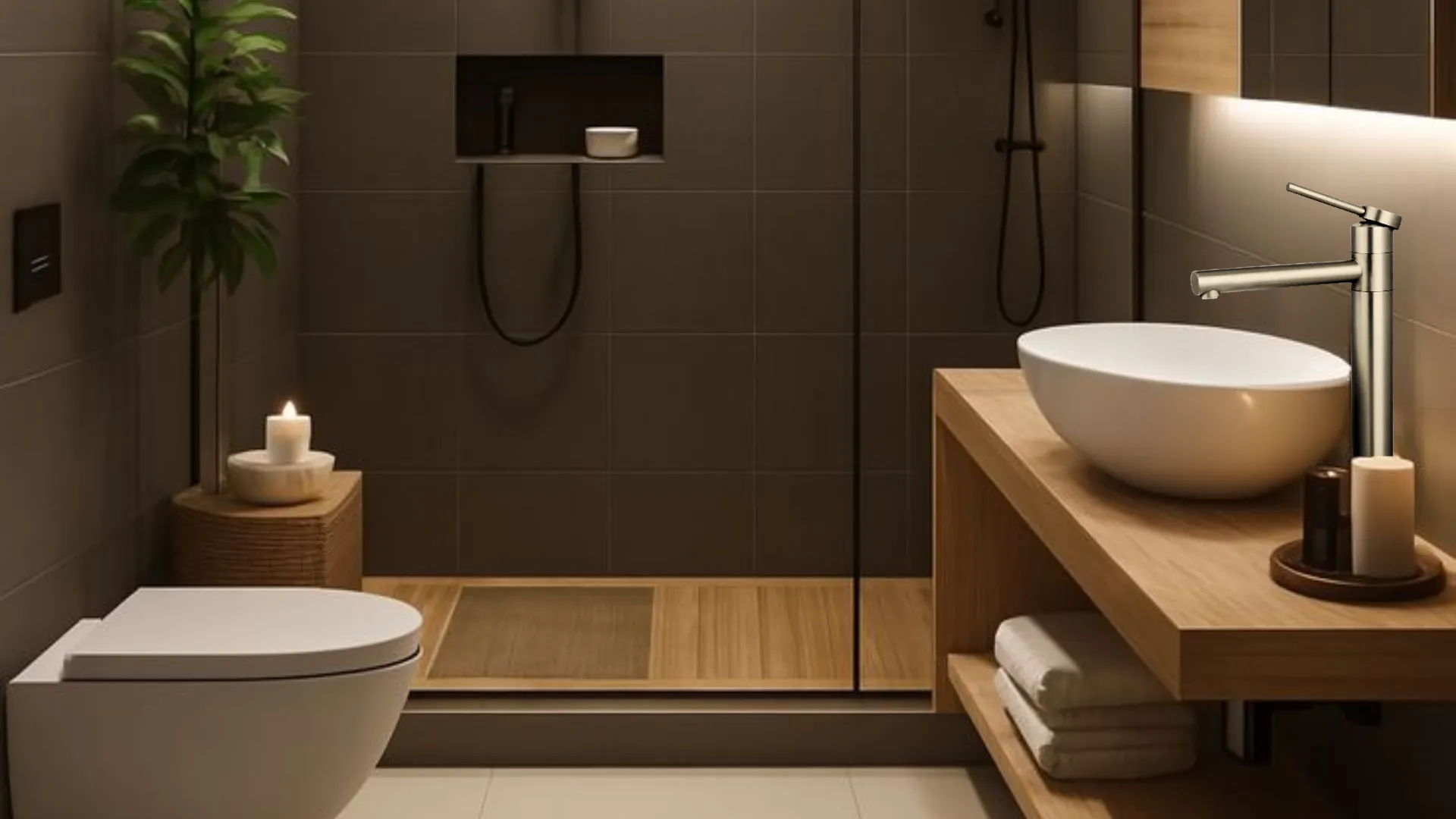 5. Checklist รีโนเวทห้องน้ำ: รวมสิ่งที่ต้องซื้อเพื่อให้ “คุมโทนสีทอง” ทั้งห้อง (Total Look)