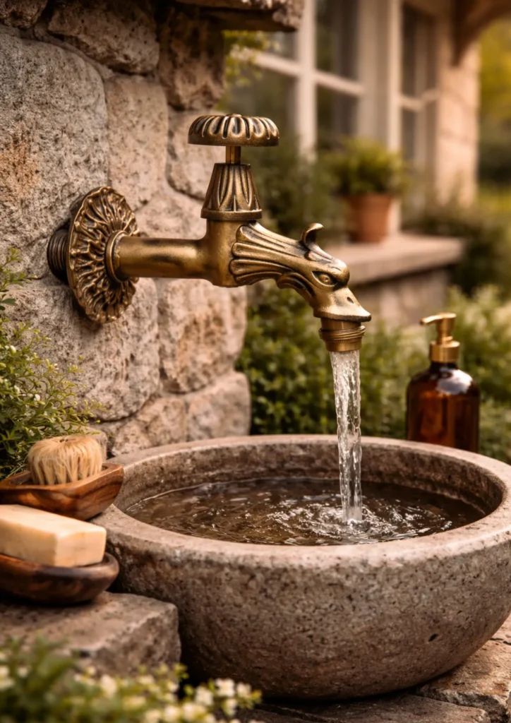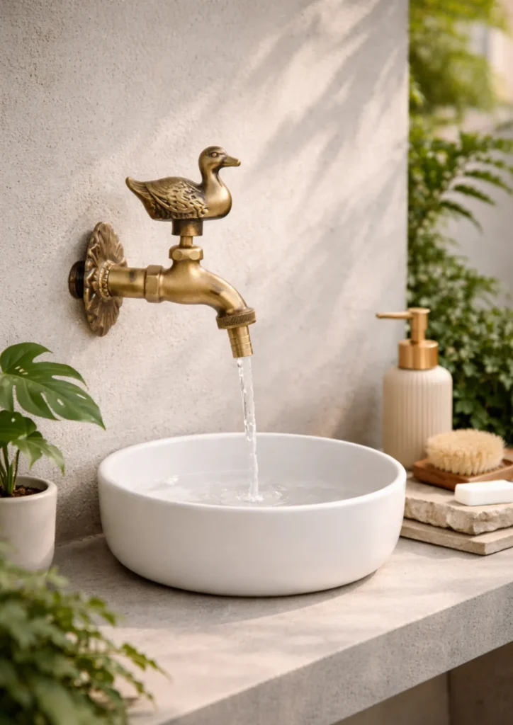 เปลี่ยนจุดล้างมือธรรมดาให้กลายเป็นงานศิลปะ ด้วยการใช้ ก๊อกน้ำทองเหลืองรูปสัตว์ (เช่น นก, กระรอก, สุนัข) เพื่อสร้างบรรยากาศสวนสไตล์อังกฤษที่เปี่ยมเสน่ห์