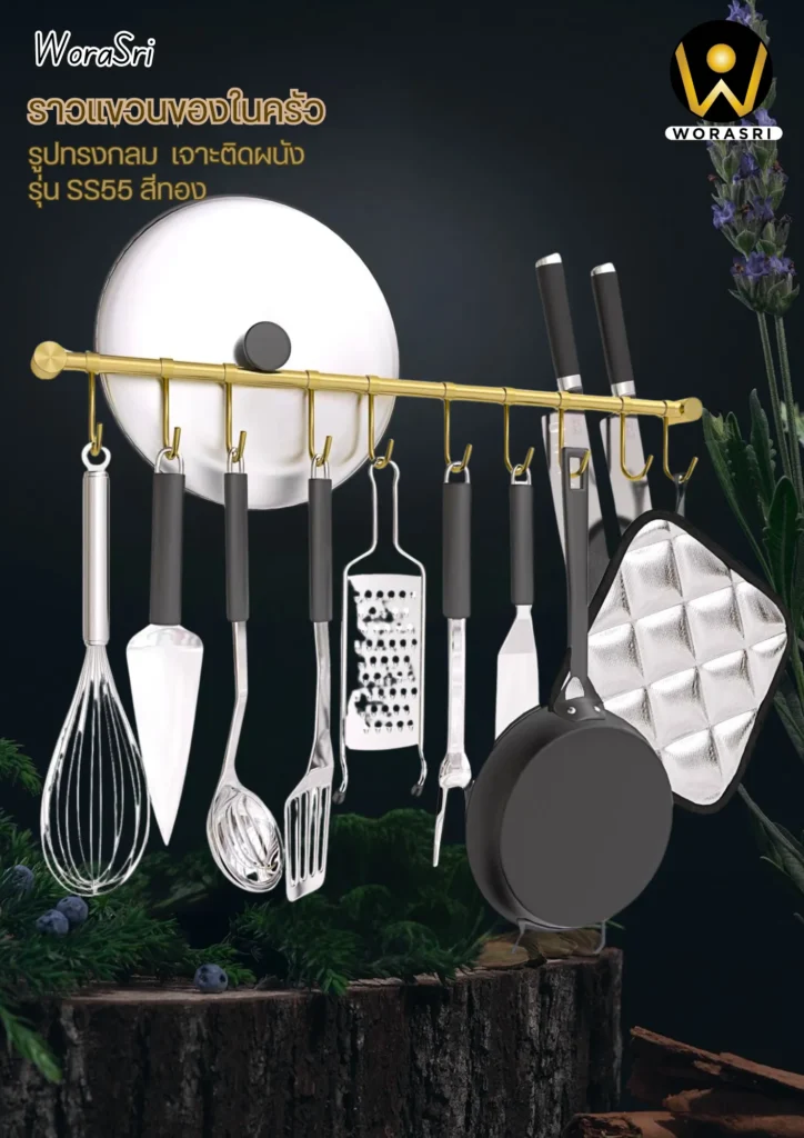 โบรชัวร์สินค้า ห่วงราวแขวนชั้นวางผ้าราวมือจับพยุงติดผนังห้องน้ำสีทอง