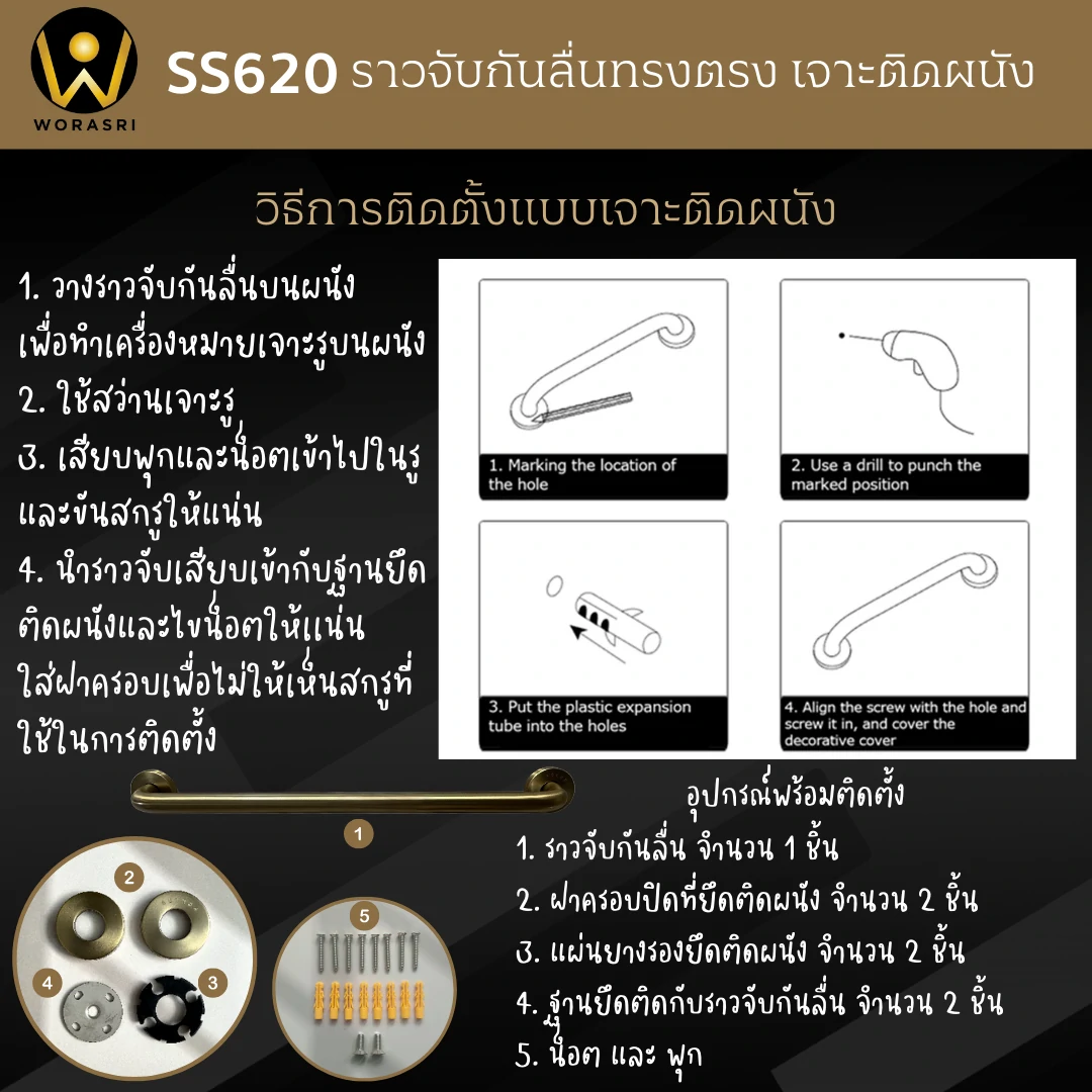 1. รุ่น SS620 ราวมือจับพยุงทรงตัวกันลื่นล้มทรงตรง